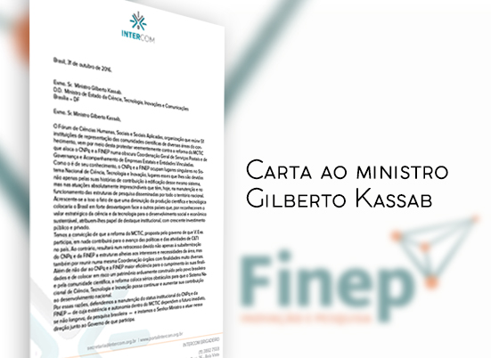 A Intercom é signatária de uma carta enviada pelo Fórum de Ciências Humanas, Sociais e Sociais Aplicadas ao ministro da Ciência, Tecnologia, Inovações e Comunicação, Gilberto Kassab, alertando para as consequências da alocação do CNPq e da Finep em uma área estranha a suas finalidades.