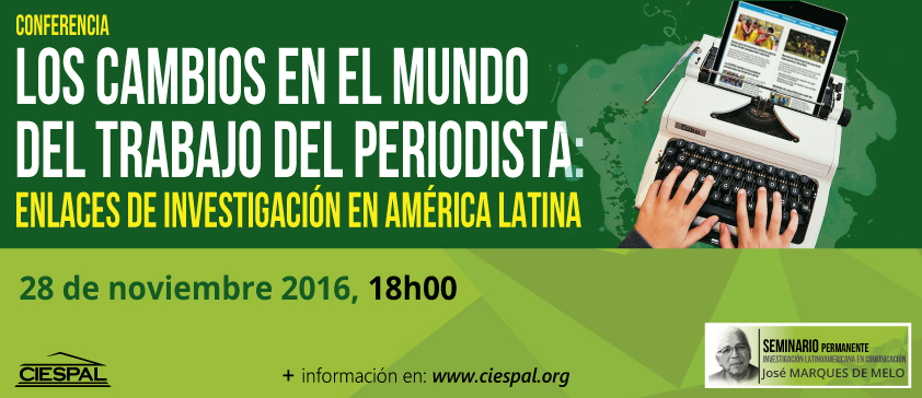 O evento integra a programação dos Seminários Permanentes José Marques de Melo, do Ciespal, e tratará de questões como as alternativas de trabalho para jornalistas na internet e a crise do modelo hegemônico de produção jornalística. Para saber mais sobre a conferência, acesse http://ciespal.org/event/los-cambios-en-el-mundo-del-trabajo-del-periodista-enlaces-de-investigacion-en-america-latina.