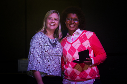 Ana Regina Rêgo, da UFPI, recebeu do diretor Regional Sul, Marcio Fernandes, o Prêmio Luiz Beltrão na categoria Liderança Emergente