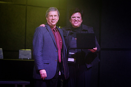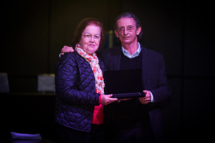 Francisco Rüdiger, da UFRGS/PUCRS, recebeu da presidente da Intercom, Marialva Barbosa, o Prêmio Luiz Beltrão na categoria Maturidade Acadêmica