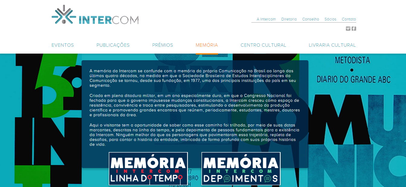 Outro espaço da área de Memória, este criado especialmente para o novo site, são as entrevistas com ex-presidentes da Intercom. Em longos e detalhados depoimentos, eles contam a história da entidade, a partir de seus pontos de vista e percepções, levando em conta a realidade política e cultural vivida pelo país em cada fase retratada e suas trajetórias.