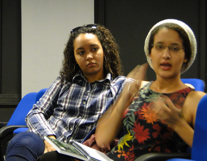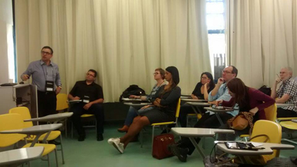 No Encontro de Educomunicação, foram compartilhadas experiências na área em diferentes partes do país e ressaltou-se a importância da difusão do conceito. Anny Barreto e Iasmin Bandeira (foto acima), da Universidade Federal de Campina Grande, contaram sobre o desenvolvimento da educomunicação na região, fizeram uma defesa apaixonada do trabalho desenvolvido em sua instituição e lembraram que, “apesar de a nomenclatura não ser comum, a prática da educomunicação é”.