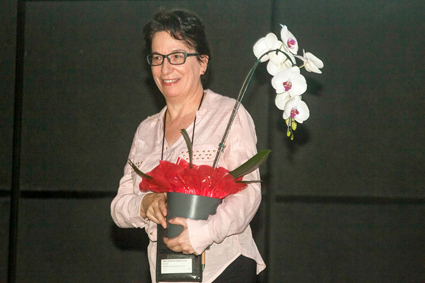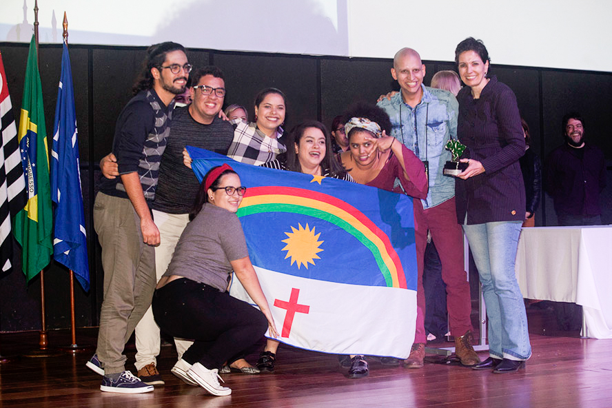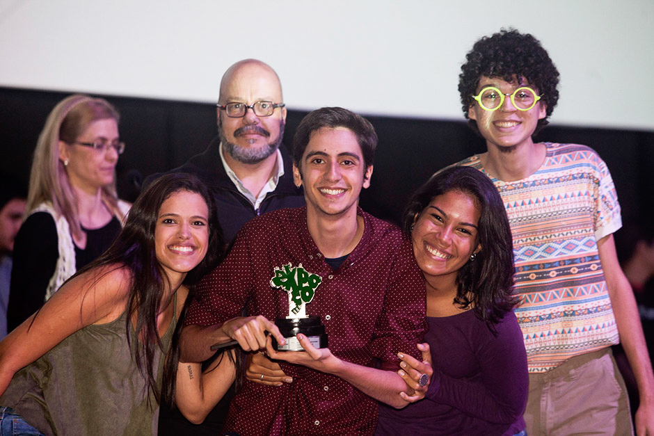 Como nos demais Congressos, a entrega dos Prêmios Expocom, em suas 69 categorias, foi um momento de festa. Com direito à bateria da escola de samba Nenê de Vila Matilde, cujo tema do próximo carnaval é Curitiba, cidade que sediará o Congresso Nacional de 2017, a premiação lotou o auditório do CDI. Antes de a entrega dos troféus começar, a Intercom fez uma homenagem à equipe da ECA, na pessoa da coordenadora do evento e chefe do Departamento de Comunicações e Artes, Roseli Figaro (foto à esq.), pela dedicação e empenho que garantiram o sucesso do encontro. E os coordenadores do Expocom (à dir.), representando todos os professores envolvidos na avaliação dos trabalhos, posaram juntos.