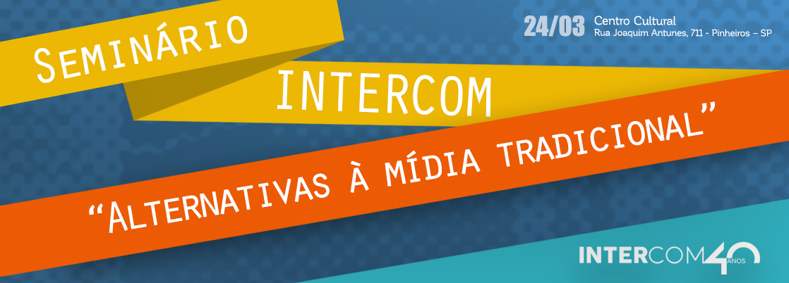 Termina no próximo dia 10 de fevereiro o prazo para inscrição no Seminário Temático Intercom/Novas Mídias que tratará do tema “Alternativas à mídia tradicional”. O encontro, marcado para o dia 24 de março, no Centro Cultural José Marques de Melo, em São Paulo. é coordenado pelo diretor Editorial da Intercom, Felipe Pena, e resultado de uma parceria firmada entre a entidade e diferentes atores no cenário de produção midiática alternativa, no intuito de proporcionar uma maior integração entre a academia e os profissionais de instituições e coletivos.