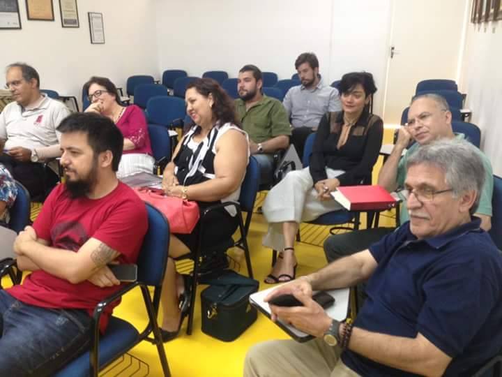 Os organizadores da obra, à esquerda, conversam com os leitores que prestigiaram o lançamento