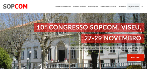 A submissão de resumos expandidos para o X Congresso da Associação Portuguesa de Ciências da Comunicação (Sopcom), que será realizado de 27 a 29 de novembro, na cidade de Viseu, em Portugal, pode ser feita até 21 de junho. 0 tema do evento - Ciências da Comunicação: Vinte anos de Investigação em Portugal - é, como explica a chamada de trabalhos, "um desafio para que os participantes desenvolvam uma reflexão não apenas retrospectiva, mas também, e sobretudo, prospetiva. Esta reflexão é, sem dúvida, uma condição necessária para que possamos continuar a acompanhar e, em parte, a determinar os caminhos da comunicação no nosso país e no mundo”.