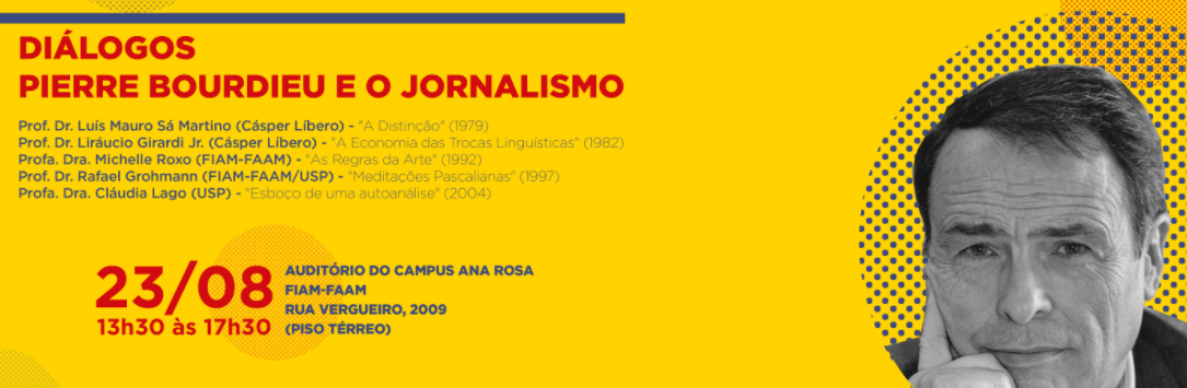 No dia 23 de agosto, das 13h30 às 17h30, o Mestrado Profissional em Jornalismo do FIAM-FAAM promoverá o seminário Diálogos - Pierre Bourdieu e o Jornalismo. Cada convidado comentará uma obra do autor e traçará relações com a comunicação e, especificamente, com o jornalismo.