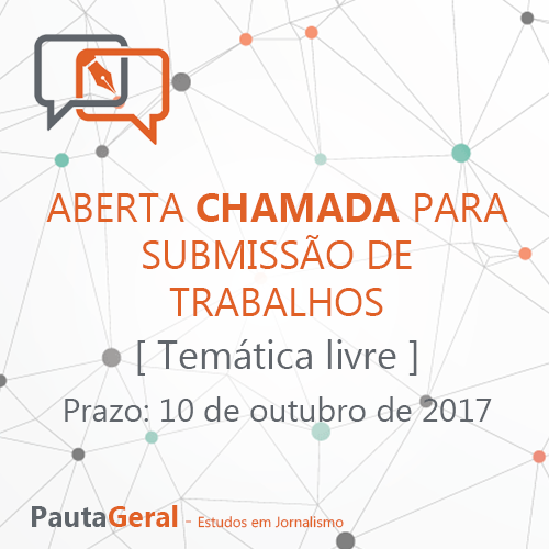 A revista científica Pauta Geral – Estudos em Jornalismo, editada pelo Programa de Mestrado em Jornalismo da Universidade Estadual de Ponta Grossa (UEPG), recebe até o dia 10 de outubro artigos para a segunda edição deste ano. O tema deste número é livre, mas a reflexão deve abordar estudos e pesquisas em jornalismo.