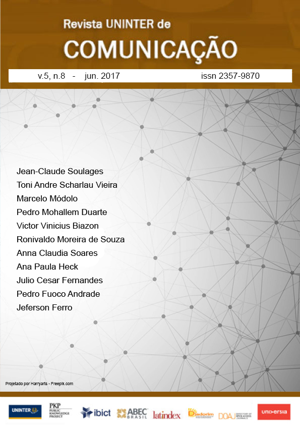 A última edição do periódico, publicado pelo grupo de pesquisa Comunicação, Tecnologia e Sociedade, pode ser lida em http://uninter.com/revistacomunicacao/index.php/revistacomunicacao/issue/current. No número, entre os oito textos publicados, estão “L'information en ligne et son méta-récepteur”, de Jean-Claude Soulages, e “Programação de entretenimento não ficcional na TV aberta brasileira: levantamento do ao vivo na TV Globo, TV Record e SBT”, de Julio Cesar Fernandes e Pedro Fuoco Andrade.