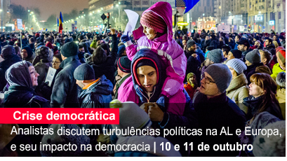 Nos dias 10 e 11 de outubro será realizado em São Paulo o evento “Democracias em Crise? Experiências Europeias e Latino-Americanas”. Promovido pela Cátedra Martius de Estudos Alemães e Europeus da Fundação Friedrich Ebert (FES), pelo Goethe-Institut São Paulo e o Grupo de Pesquisa Qualidade da Democracia do Instituto de Estudos Avançados (IEA), o encontro começará com um talk show sobre as experiências na Europa e América Latina, a partir das 19h, no auditório do Goethe Institut.