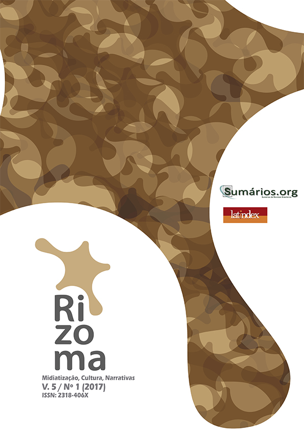 O número atual de Rizoma: midiatização, cultura, narrativas, revista científica do Departamento de Comunicação Social da Universidade de Santa Cruz do Sul (Unisc), traz oito textos na seção "Artigos" e sete na "Seção Livre", além de resenhas e entrevistas. Entre as contribuições dos pesquisadores estão "A TV Pública é midiatizada? Um estudo sobre o conceito de telejornalismo midiatizado aplicado ao telejornalismo público brasileiro", de José Tarcísio Oliveira Filho, Iluska Coutinho e Cláudia Thomé; "A circulação da experiência da dor em narrativas no Facebook", de Marlon Santa Maria Dias e Viviane Borelli; e "Novos cenários sociais: a cobertura do jornalismo sobre o surgimento do crack e da Aids", de Fernanda Vasques Ferreira e Marcelli Alves.